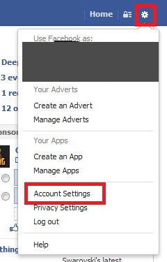 To start securing your account, click on the drop down menu from the top right corner of your Facebook account and go to Account Settings.